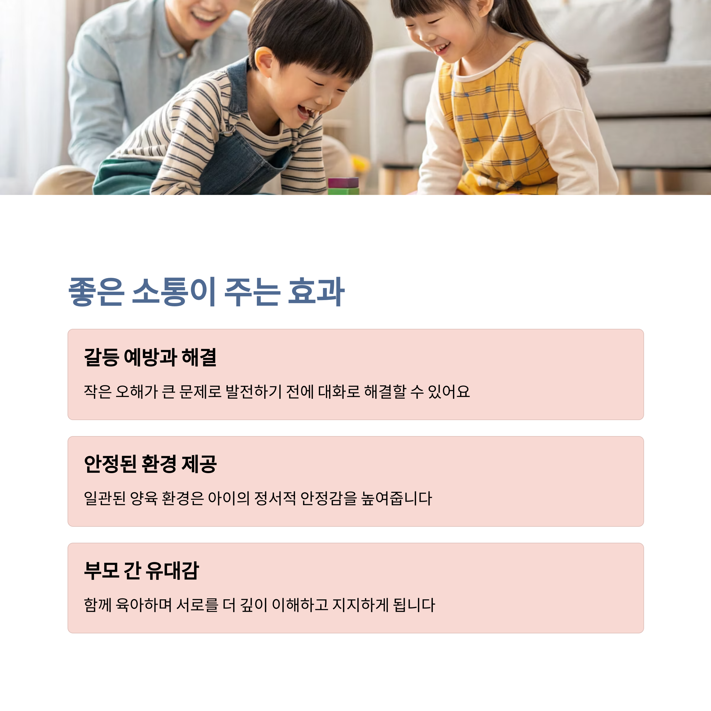 | 협력과 신뢰를 바탕으로 관계 유지 | 다양한 양육 철학의 차이 조율 | 오해 줄이고 신뢰 쌓기 위한 실천 |