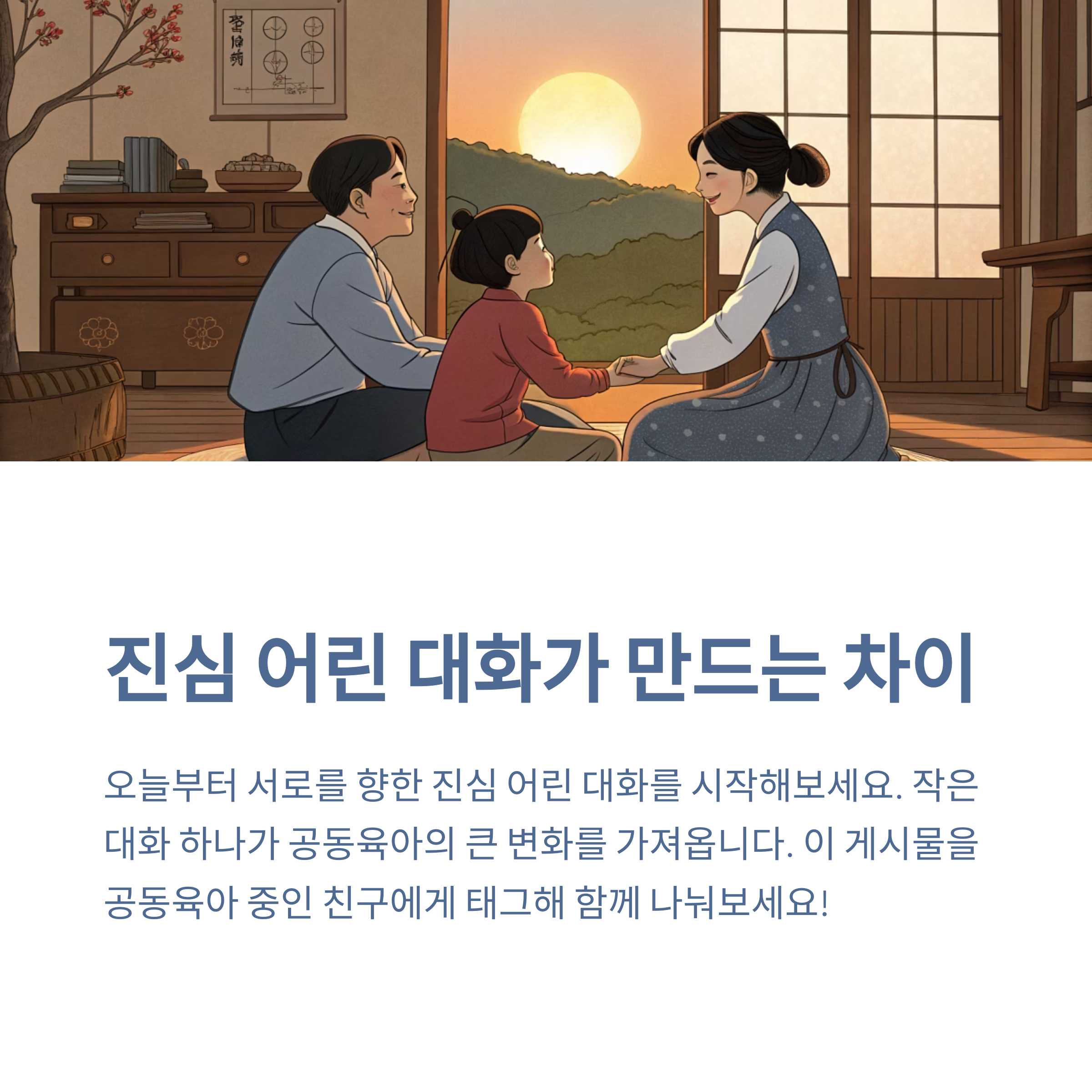 여러분은 공동육아를 하며 어떤 소통 팁을 실천하고 계신가요? 또는 갈등을 해결한 특별한 경험이 있으신가요? 댓글로 여러분의 소중한 이야기를 나눠주세요.