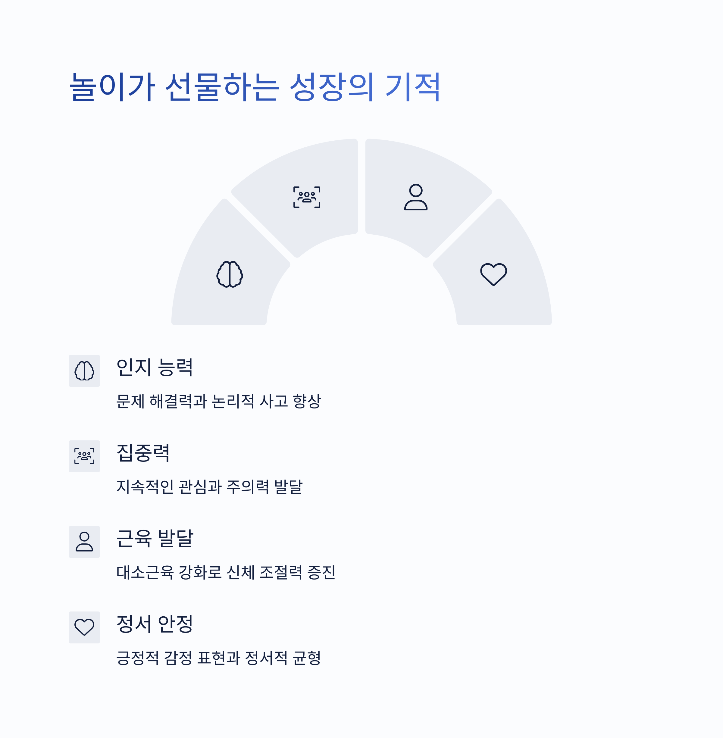 아이의 뇌는 다양한 자극을 통해 놀라운 속도로 성장합니다. 특히 감각을 자극하는 활동은 신경세포 간의 연결을 활발하게 만들어 정보 처리 능력과 기억력 향상에 큰 도움이 됩니다. 감각놀이는 단순한 놀이처럼 보일 수 있지만, 그 안에는 청각, 시각, 촉각 등 다양한 감각 자극이 포함되어 있어 뇌의 여러 영역을 동시에 활성화하는 효과를 가지고 있습니다. 특히, 균형감각을 자극하는 활동은 소근육, 대근육의 발달에도 긍정적인 영향을 미치며 전반적인 학습 능력 향상으로도 이어집니다.