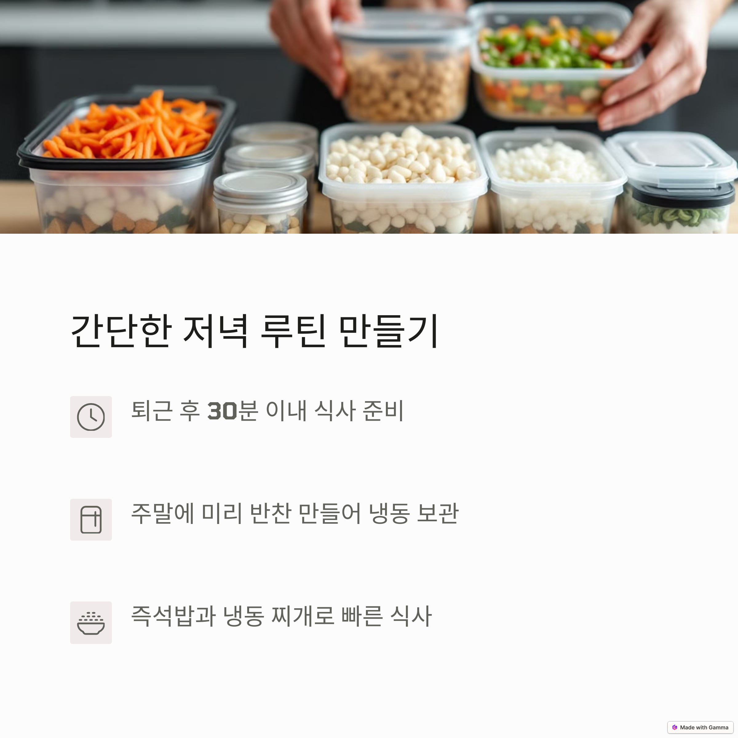 | 시간관리 팁 | 간단한 계획만으로도 저녁 시간이 달라집니다. |
