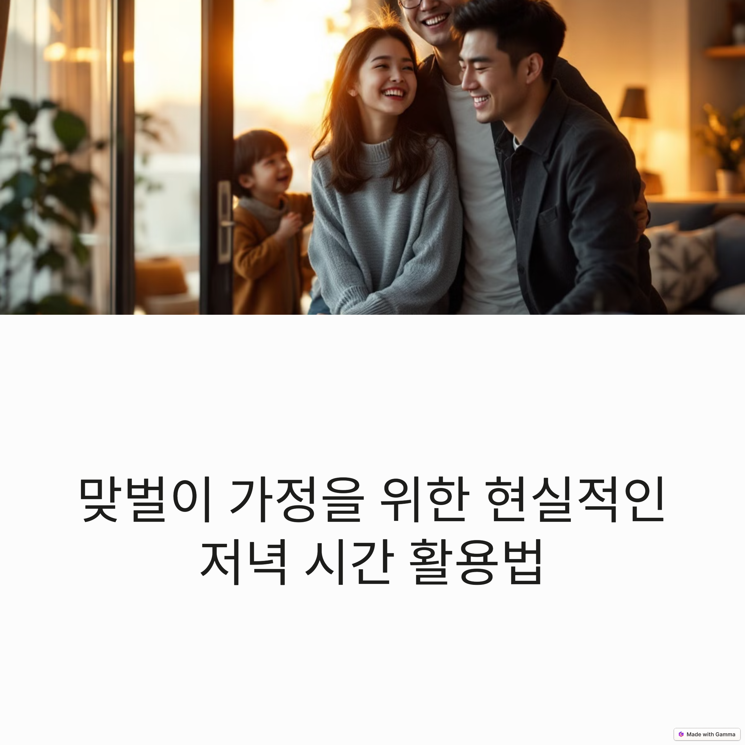 바쁜 일상 속에서도 가족과의 시간은 무엇보다 소중합니다. 특히 맞벌이 부부에게 저녁시간은 하루 중 가장 함께할 수 있는 기회이기도 하죠. 하지만 퇴근 후의 피로, 밀린 집안일, 아이들과의 시간까지 모두 챙기기란 결코 쉬운 일이 아닙니다. 그렇기에 더욱 효율적이고 스마트한 저녁시간 활용법이 필요합니다. 오늘은 여러분과 함께 현실적인 꿀팁을 공유드리며 더 나은 저녁을 만들어갈 수 있는 방향을 모색해보려 합니다. 단순한 이론이 아닌, 실제로 맞벌이 가정에서 적용 가능한 작지만 확실한 변화들을 통해 삶의 질을 한층 높일 수 있답니다. 그럼 지금부터 함께 살펴보시죠.