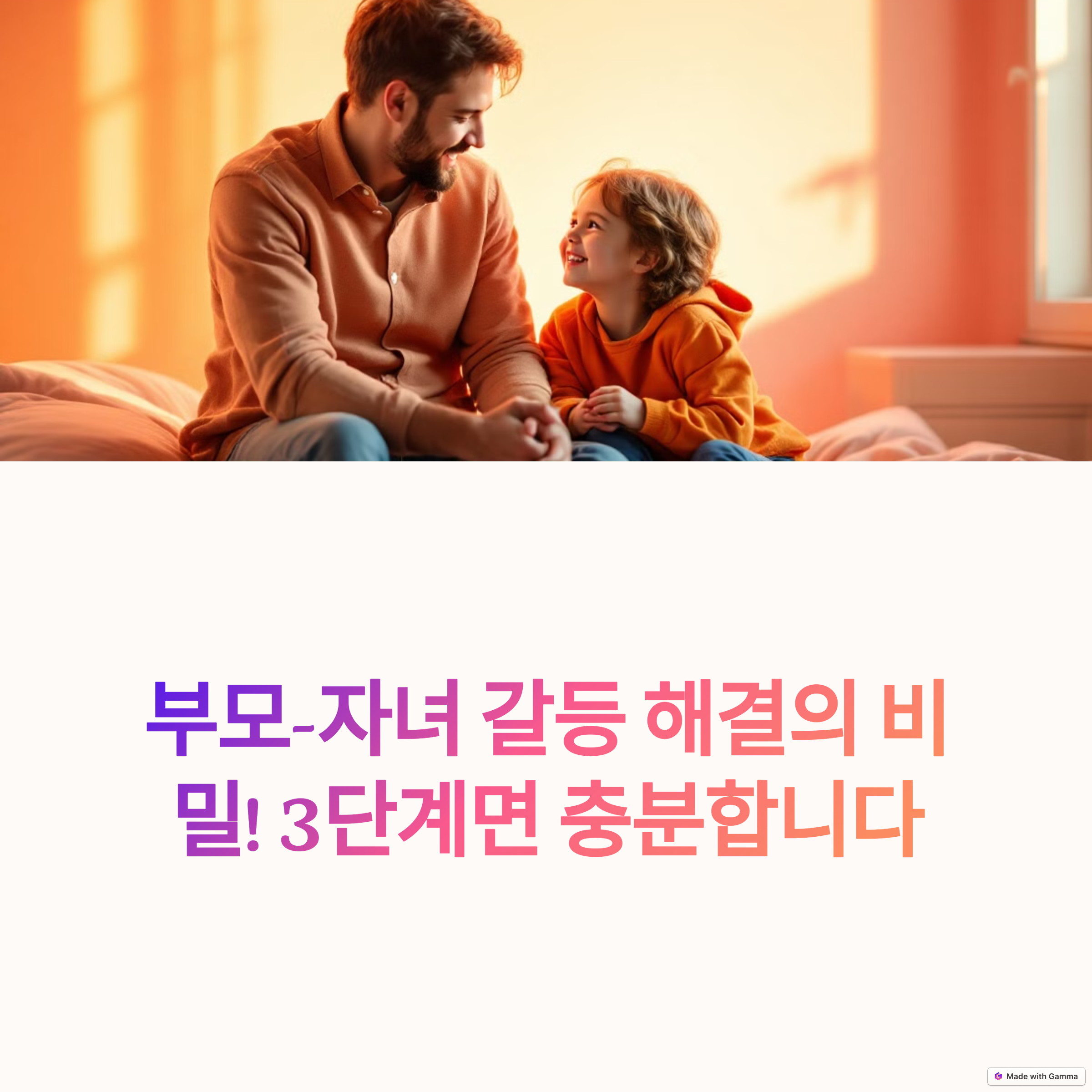 부모와 자녀 간의 갈등은 피할 수 없는 과정이지만 그것을 어떻게 대하느냐에 따라 관계는 더욱 단단해질 수 있습니다. 감정을 인정하고, 공감하며, 함께 해결책을 찾는 3단계 접근법은 아이뿐 아니라 부모 자신에게도 성장의 기회를 제공합니다. 중요한 것은 일관된 태도와 꾸준한 실천입니다. 오늘부터라도 아이와의 대화에서 작은 변화들을 시도해보세요. 갈등은 더 나은 관계로 가는 징검다리가 될 수 있습니다.