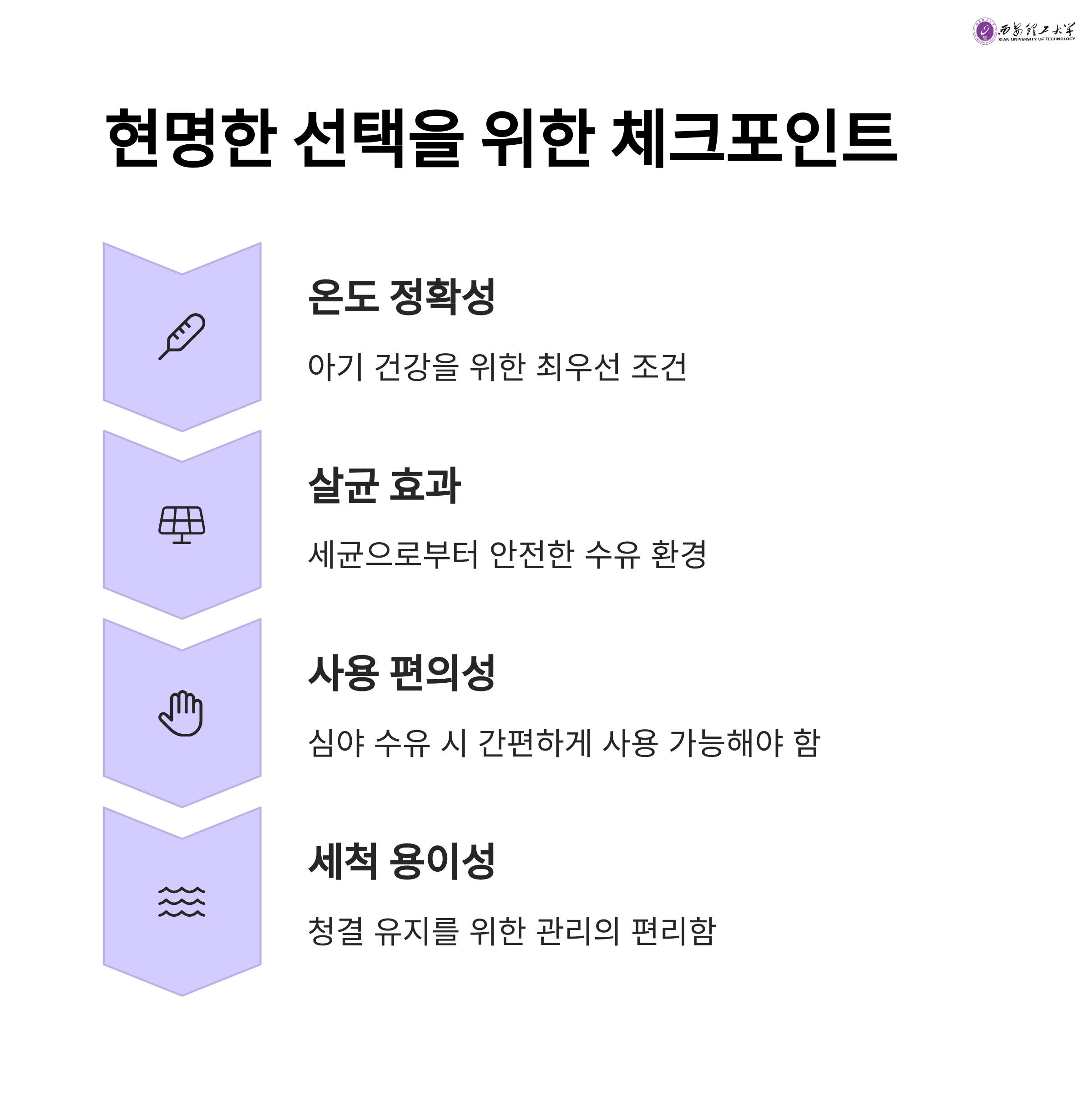수유 시기별 맞춤 온도 선택 가능 외출 시에도 편리한 조작 가능 젖병 및 내통 위생 관리에 효과적