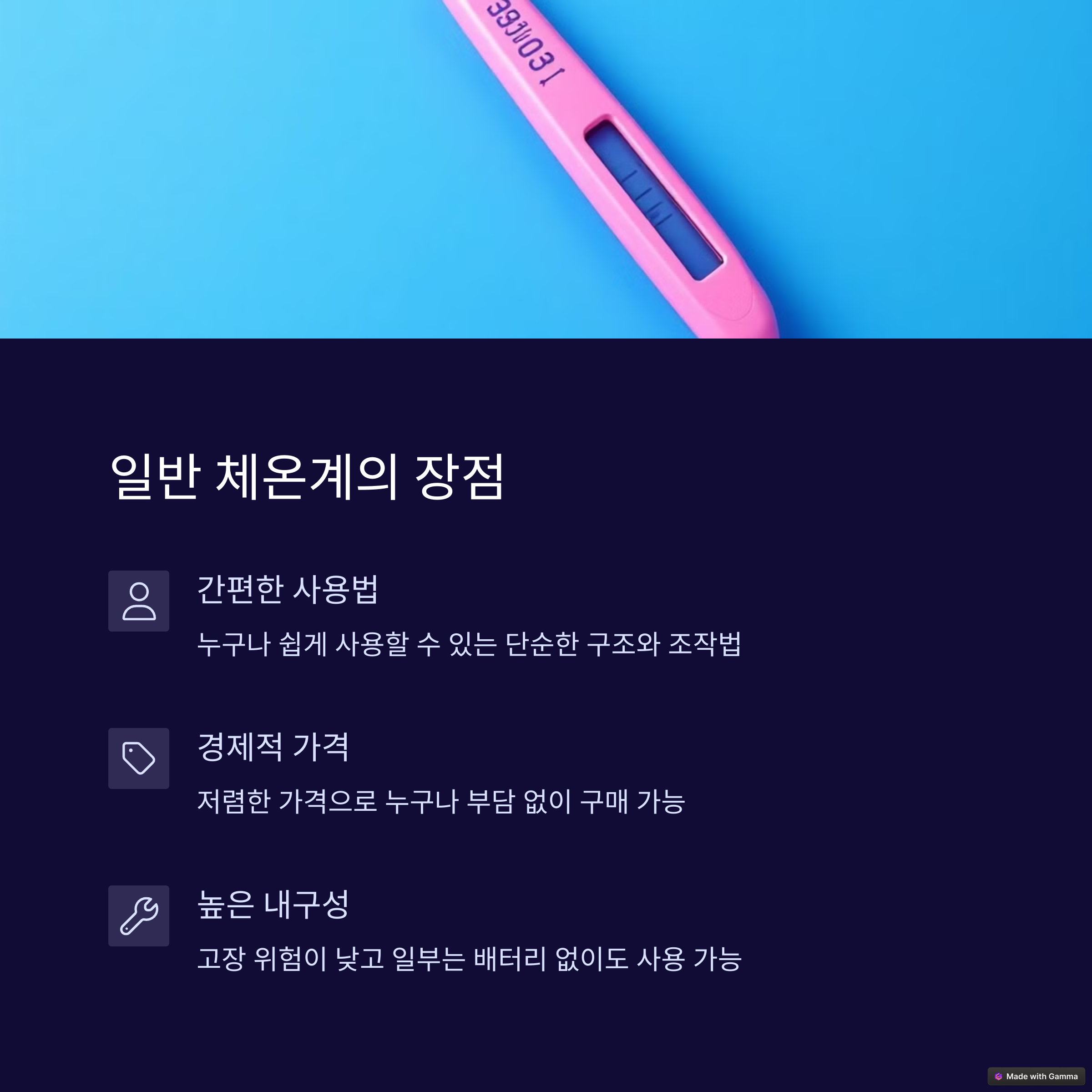| 일반 체온계 | 전통적인 방식으로 간단하고 직관적 |