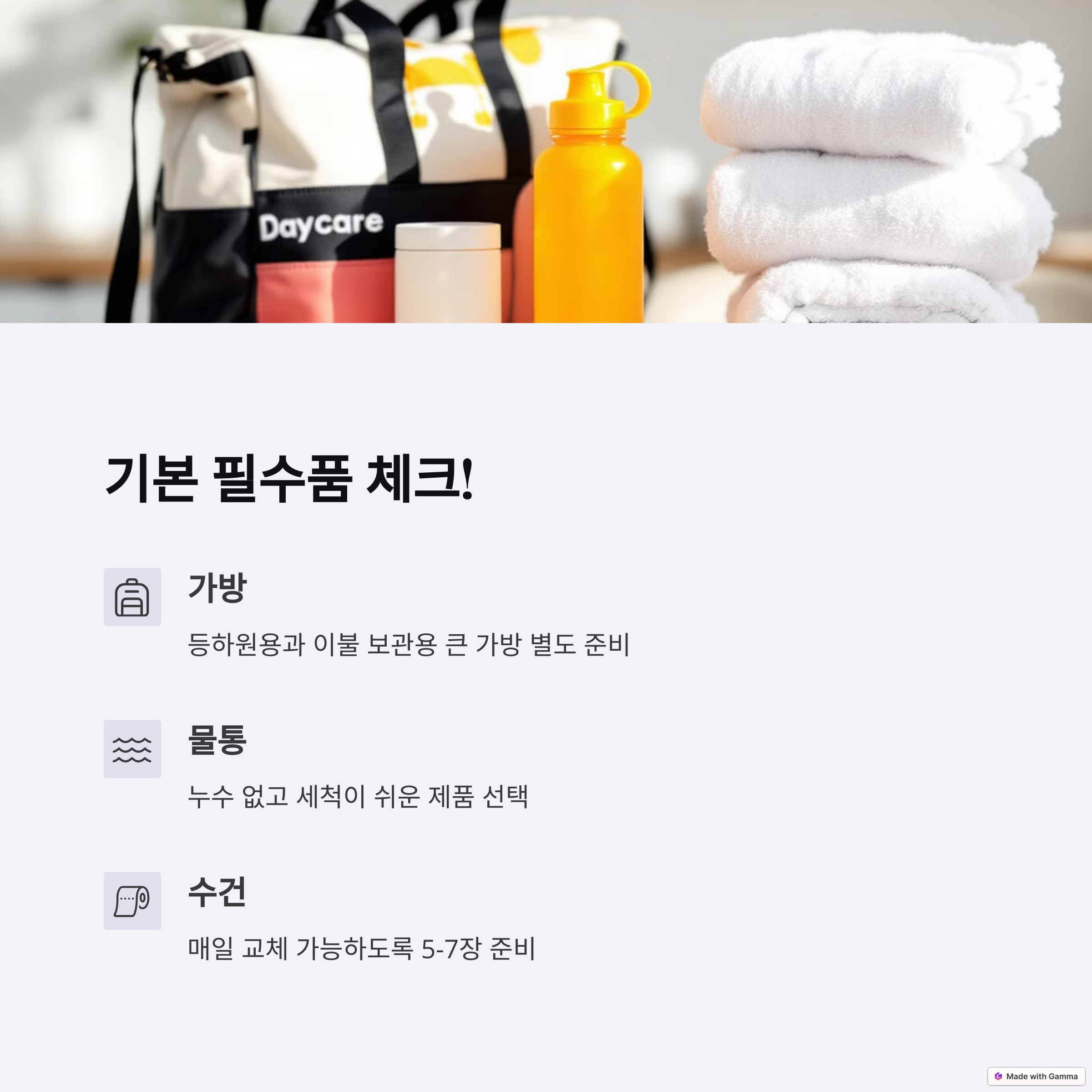 | 어린이집 준비물 | 등원 전 꼭 챙겨야 할 실속 리스트입니다. |