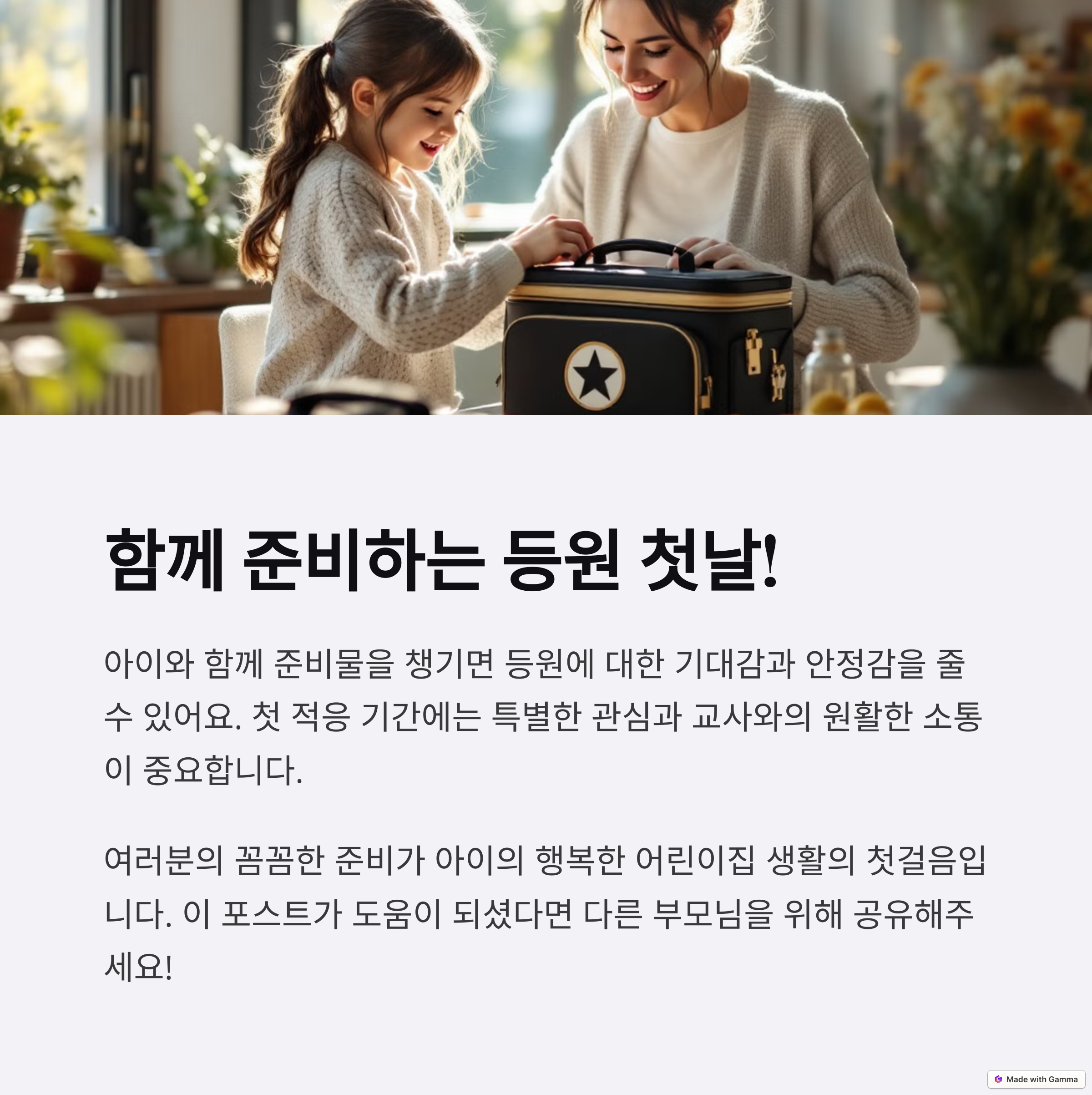 어떤 준비물이 가장 유용했는지, 처음 어린이집을 보낼 때의 경험이나 도움이 되었던 꿀팁이 있다면 댓글로 공유해주세요. 다른 부모님들에게도 큰 도움이 될 수 있습니다!