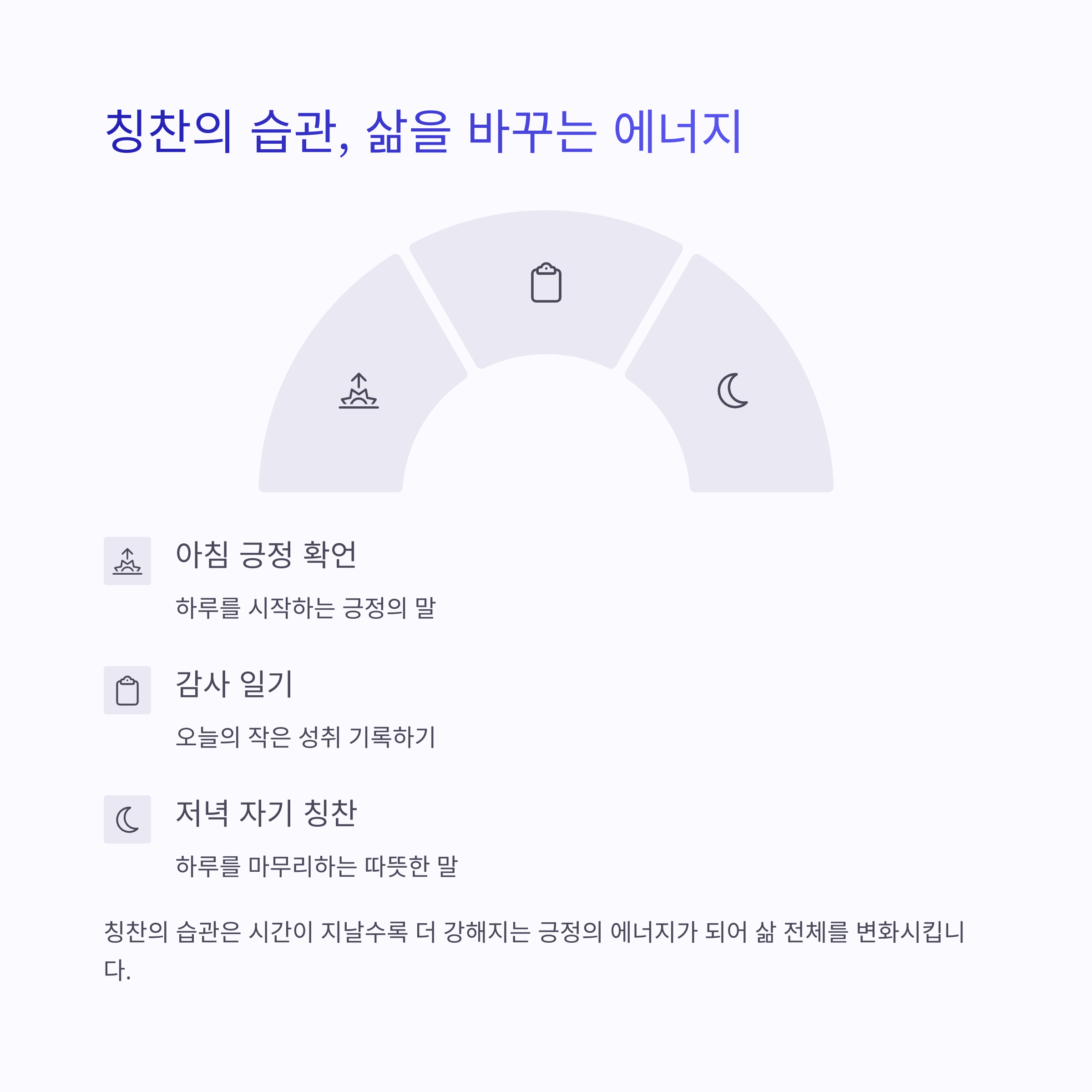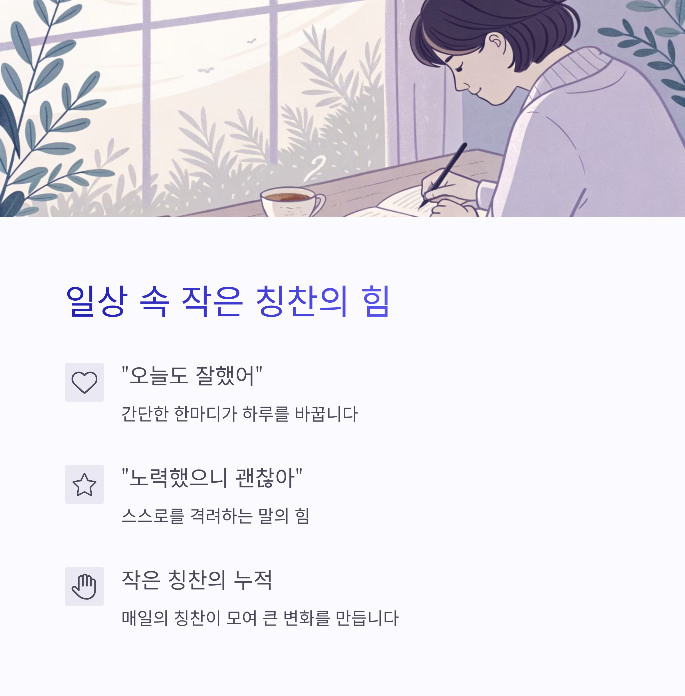 | 칭찬 습관 | 일상 속 자신을 격려하는 긍정의 말입니다. |